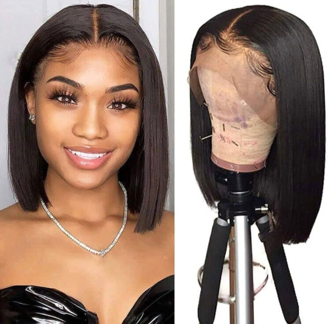 Transparent Lace Frontal 13x4 Brazilian Straight Bob Wig 180% Density 100% Human Hair Can Be Worn Straight or Curled